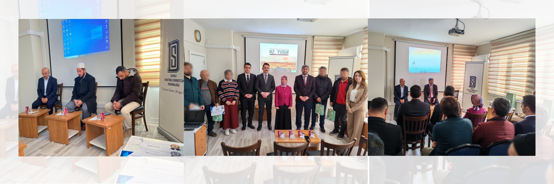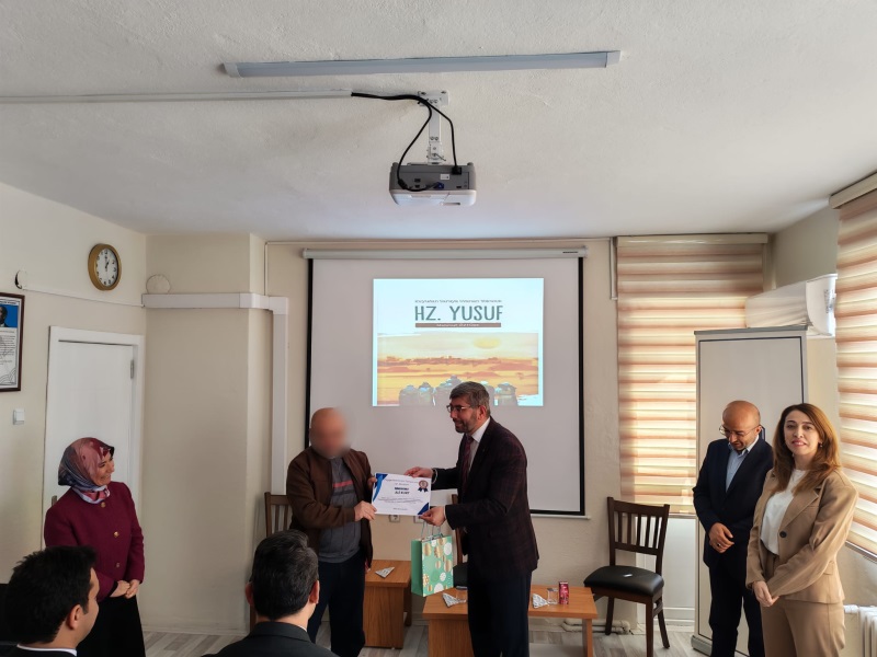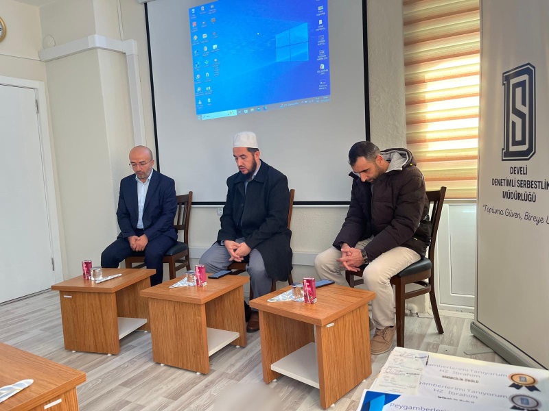Müdürlüğümüz Manevi Rehberlik Biriminde görevli Manevi Rehberimiz Murat Ay tarafından organize edilen programa Denetimli Serbestlikten Sorumlu Cumhuriyet Savcısı Ziya KAYA, Savcı Yardımcısı Muharrem SEÇİLİR, Develi ilçe Müftüsü Mehmet YÜREK, Denetimli Serbestlik Personelleri ve yükümlüler katıldılar. İlçe müftülüğünde görevli hocalarımız Ahmet Vural ve Metin Arıcı' nın Kur'an-ı Kerim tilaveti ve ilahileri ile başlayan program İlçe Müftüsü Mehmet YÜREK'in konuşmaları ve kandil duası ile devam etti. Müdürlüğümüzde yürütülen "Peygamberlerimi Tanıyorum Projesi" kapsamında yükümlülere okutulan "Hz İbrahim" kitabının yarışması sonunda dereceye giren yükümlülere hediyeleri Denetimli Serbestlikten Sorumlu Cumhuriyet Savcısı Ziya KAYA ve İlçe Müftümüz Mehmet YÜREK tarafından takdim edildi.