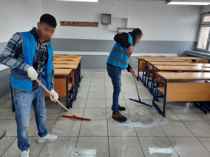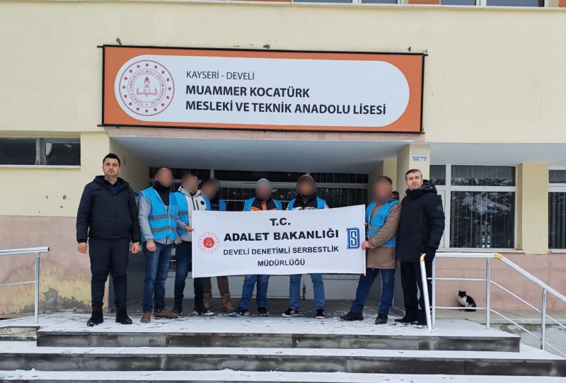 Develi Denetimli Serbestlik Müdürlüğümüz bünyesinde kamuya yararlı bir işte ücretsiz çalışma yükümlülüğünü yerine getiren yükümlüler tarafından okulların yarıyıl tatiline girdiği ve çocukların okullarda olmadığı dönemde okul temizliği kapsamında Muammer Kocatürk Mesleki ve Teknik Anadolu Lisesi'nde derslikler, iç mekan ve bahçe temizliği yapılmıştır.